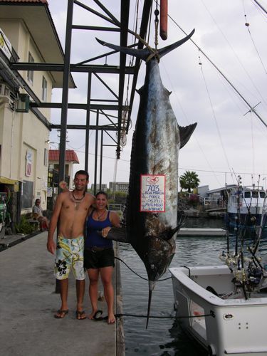 It seemed everything we tried today seemed to pay off for us with Jerry the son catching a 84 inch sailfish, Tom catching a big Greater Golden Amber Jack, Tim also catching a nice Amber Jack and big landing a small black fin tuna.