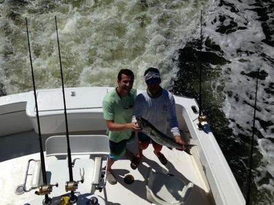 While fishing was not red hot today we did manage to catch a black fin tuna some bonitos and a few kingfish. We did lose a very big kingfish right behind the boat!%#&$#