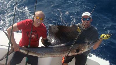 After a good 20 min back and forth tug a war at last up popped this 82-inch sailfish.