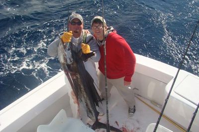 It seemed Martin would gain 10 feet then the fish would take 20 it was a back and forth tug a war for well over 30 min but Martin hung in there and soon enough Martin got his first monster sail to the boat.