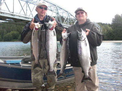 Aug 20 John Schikoski and Betty Benner drifted the Kitimat River and they landed 4 Coho. John and Betty have recently moved to Frazer Lake but return to the Kitimat River to fish. When John and Betty lived in Kitimat it was a common sight to see them drifting the Kitimat River in their Alumaweld Driftboat with their dog. Congratulations on your catch and it is nice to see you on the water again.