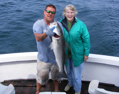 Lately, there has not been much striped bass activity on Billingsgate Shoals. We used to find them, first on the north edge and then, as the tide started out, they would move to the south edge. When we started having the big tides and the storm hit these fish disappeared. Well, they seem to be coming back a little. I had my radio on a few days ago while working on some tackle and I heard two of the boats out of Welfleet talking about seeing birds and marking some fish with their fish finders on the south edge of the shoals. This is a good sign. We have had to run all the way down to the East and West Bars by Barnstable Harbor in order to find any amount of striped bass. This is not bad for the full day trip but to do it on the half day trip we have to put the coals to our engines to get there and have enough time to fish. It is a 12 to 15 mile run depending on where you fish.