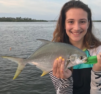 This has been the summer of Pompano here in the back waters as we have been catching them all year, not the norm for here, they usually move north for cooler water in summer most years, has has been a nice addition to this summers species list, Isabel from Orlando with a nice one………………..