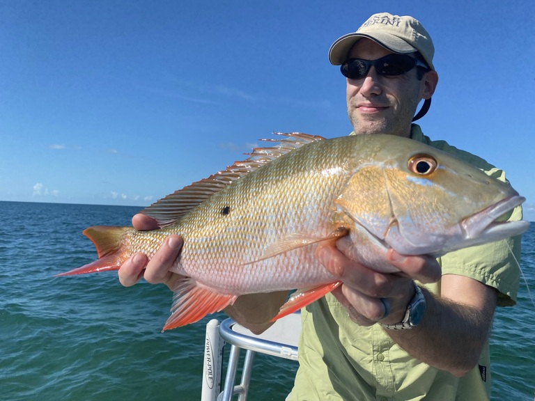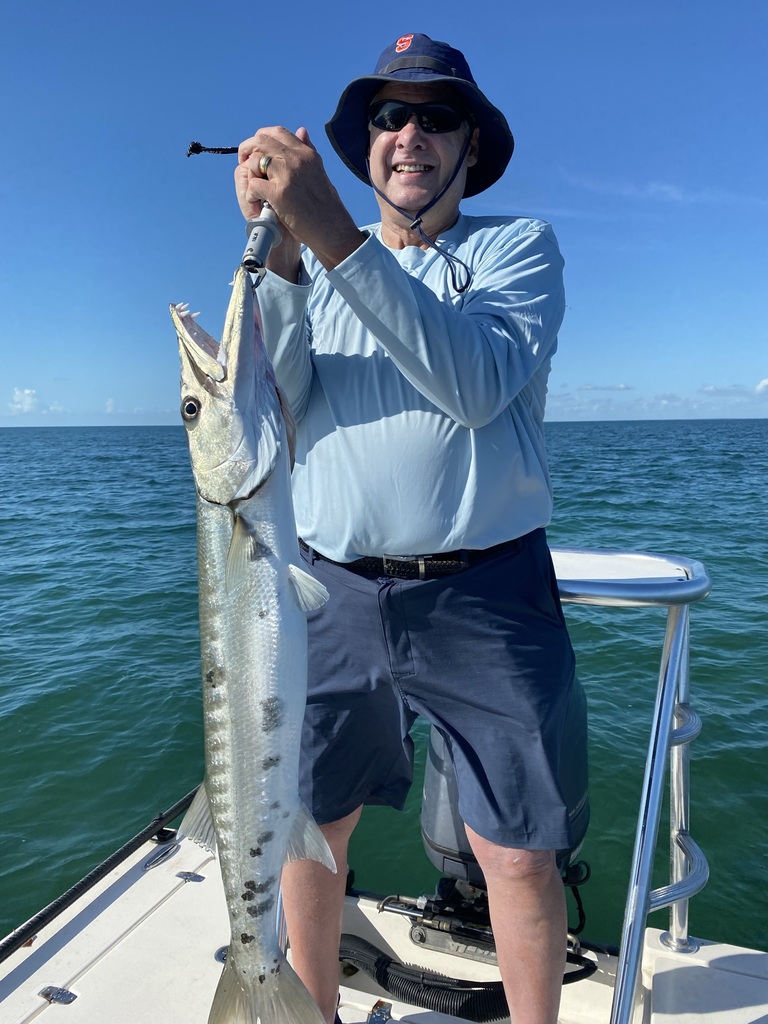 Yes, it's fall and if there was any doubt today was all the confirmation we needed. David and his dad Tim joined me this morning as we started early and enjoyed a nice crisp cool morning. David caught a couple of barracudas and jacks while snook fishing but no snook. I went to a spot where bait tends to pile up in the fall and they were there right on schedule. A few throws of the cast net later the live well was full of pilchards and off we went. When we got to our first spot and I started to live chum it took about 45 seconds for the explosions to starts and it was game on! Cast after cast it was mangrove snappers, mutton snappers, yellow jacks, big blue runners exploding on our live chum, devouring our baits and getting the drags nice and hot. With incredible action for over 2 hours we decided to fish for bonefish but that proved to be slow and after striking out on sharks it was time to head back.