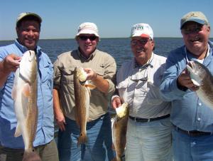 Bob, Gene, Randy, and Charlie were waiting at my dock for me and rearing to go. We loaded up and waited for daylight. Cool temps and a high tide had me thinking stay in the mash. Played a hunch near Lake Amadee and hit the trout right off. Not big but typical fall trout 13 to 17 inches. The fish were taking live shrimp and plastic under corks. Lots of action. The guys were eating it up. Nice for a change not making the long run outside. It looks as if the fish are moving in the marshes. The trout slowed so we headed for some reds and got few with out much trounble along with rat reds in the mix, good to see the small reds in the marsh.