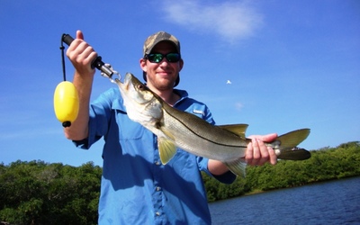We made our way north passing numerous Mackerel and Jacks chasing baits on the flats near the Little Manatee River. We made our way into the river with little success. We moved to the outer Mangrove Islands and found a pile of snook. At first we could not get them to chew but after some coaxing they got aggressive. Evan got hot hooking 5 or 6 snook in the next 20 minutes all 22-27".