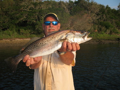 With the tide we had it was Trout fishing first and then a quick try for a decent Red fish or two. Well the Trout fishing was good but we had a hard time getting the nice Red fish to bite but there was no shortage of small (AKA Rat Reds) to be had.