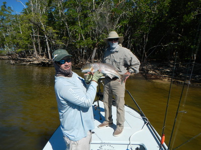 Fishing south Florida inshore waters will see a minor transition as temperatures drop. A warm winter may bring early tarpon to the backcountry. My customers and friends have had a great season so far experiencing some really nice catches. And in the Everglades National Park and Biscayne Bayareas as well. Flamingo area has also seen a good bite of redfish and seatrout. These fish are being sight fished and also being caught on many of the popular scent baits. The fly fisherman have been targeting the tarpon in places like Whitewater Bay and deep creeks. Deceiver flies and yellow/white combinations work very well in this area. I am also testing out some new tarpon toad flies in chartreuse and olive-color patterns. This is also a fantastic place to fish topwater and twitch baits. The backbays are great on windy days as well.