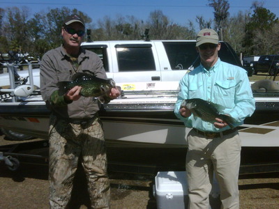 This report is for Saturday and Sundy being that boyh days fished the same with the same results.The method used was long line trolling in five foot of water fishing two feet deep.We long lined using Vicious Hi-Vis panfish line tied with two jigs each one being a 1/32 oz and the other being a 1/48 oz with Culprit Paddle tails being the choice of baits. The colors that seemed to get the bite were Red or pink jig head with blue, black and chartreause paddle tails.and the baits were pulled between one and one point three miles per hour. Both days the customers went home with a limit of fish