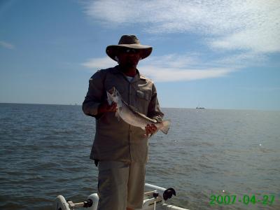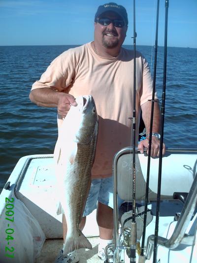 Finally some Trout. The weather of late has made finding Trout in all the rough dirty water tough. Friday was different. On board were Tom Flaherty, his brother Patrick, and friend Lee Hansen. They guys came down to the lodge for a couple of days of fishing fun. Day one for them turned out to be just that, a lot of fun. The winds were low, the seas flat and the fish were biting. We headed out into the Sound. We made 3 stops at different well heads and found Trout at each. Fishing with Bayou Chubs under a cork the guys put 60 nice Trout on ice. We made one more stop and fished with dead shrimp and added some Heads to the box along with several line stripping Reds that were too big to keep, but a lot of fun to fight. The guys had a great time and will be back at it today.