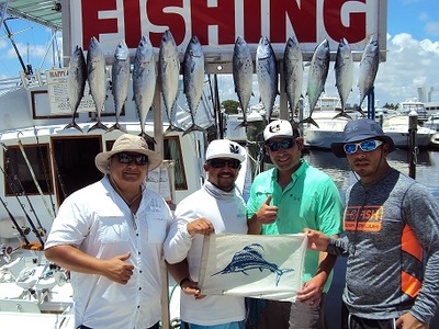 Bryan Gonzales, and friends, J.D. Cantu, Tony Pinto and Cleo Segovia from Texas chartered the Topshotfishing team to do some deep sea big game sport fishing in Fort Lauderdale, Florida. The anglers escaped the hot and humid temperatures in Texas to enjoy the comfortable weather here in Fort Lauderdale, FL – Ha Ha. Winds were out of the east at 7 mph with blue skies and temperatures in the mid 90's. As the anglers were welcomed aboard the boat by the Topshotfishing Team, the question arose as to what type of fish would they be interested in catching, and their response was, "eating fish for dinner."