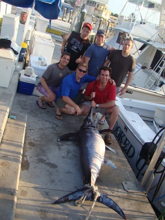 Let me set the stage for this fishing report. Today we have Brain who works for our government out of Washington DC and he has charter two boats to throw a little batcher party for his brother LTJG Jack Walsh who is in the Navy aboard the submarine the USS Louisiana. As luck would have it at the last min he was called back to duty and was unable to make the trip. So a few of the guys dropped out of the trip and we ended up taking Brain, Chris from Boston, Caleb and Morgan also from Boston and last but not least Dino the mouth from Washington DC.(LOL)