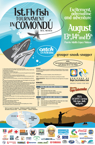 Six kayaks, 22 boats and 42 anglers participated in the first annual Fly Fish, light tackle and kayak tournament in Comondu BCS, Mexico which took place on 13, 14 and August 15, 2010 at Puerto Adolfo Lopez Mateos.