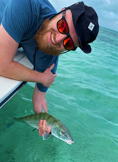 Dave, Dave, Dave, you need to find something else to do. Dave is from N.C. and was passing through South Florida on his way out of the Keys when he booked a bonefish trip for today. He told me he never bonefished before and all his fishing was in fresh water. It wasn't easy with a steady 20 MPH wind out of the east but we worked and found it to be pretty slow. Hmmm, I don't like this but not long after Dave gets a bite and it was a swing and miss through no fault of his. Finally he hooks up and the rod gets a deep bend as the drag screams and screams and screams. Wow, I could tell he had a nice fish on and several long runs later the nice 10lb bonefish comes to the side of the boat for some pictures and a healthy release. Well, that's over and done with. Now Dave can focus on the rest of his vacation trip and look for a new species to conquer.