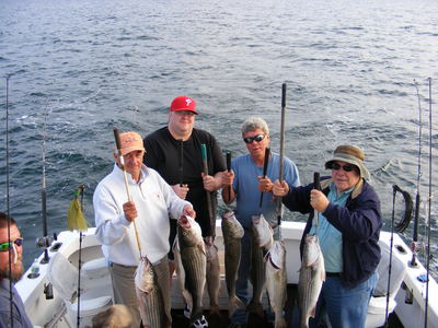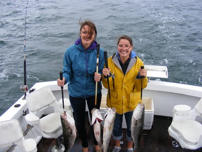This last week I had a couple groups out that did exceptionally well. Bob Strycharski from this area brought a crew out on a half day trip and was able to land their full complement of 10 stripers with ease. On another trip Will Platt and his friend brought two ringers on their trip. Will likes to use the light tackle when possible. Well, Jessica and Jennifer, showed them both up by landing the most and largest fish of the day. To say the least the striper fishing was better than excellent.