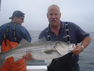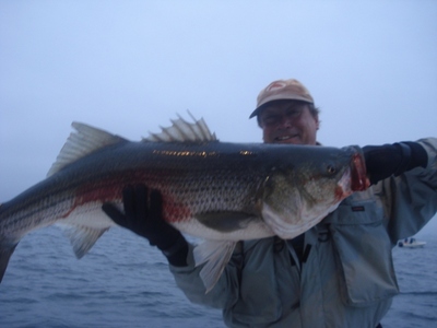 Headed outside and were in tons of bunker filled up the well... Seen a few fish caught but we didnt have no bites... Headed up the line and found a acre of bunker with nobody on them.. John got a nice fish right away... Made another drift nutin... Didnt want to waste much time as the bite was now going off up north...