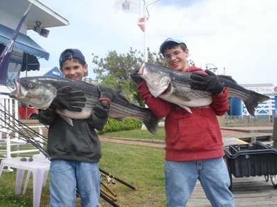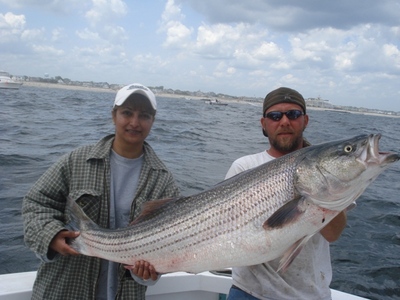 The Second Bass we Boated here was Nadya's First Striper Which she caught all By herself 44LBS she finished Up with her Limit with a 30lber... Not bad for her First 2 bass!!!