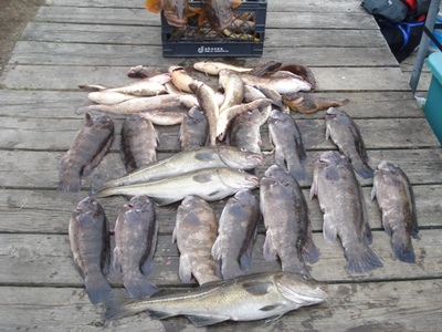 Perry was the first to his Blackfish limit. Joe Jigmafish also had his limit plus 2 of the keeeper cod and some ling on da Shrimps... The Congas were brutal at times But Mikey put them to good use...
