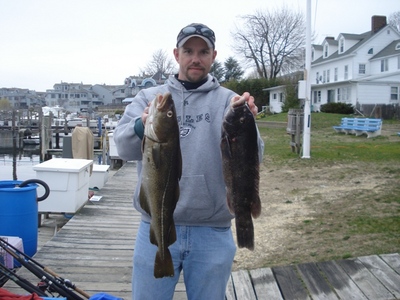 Headed out to 100 ft and starting picking some blackfish and ling...Then we got some cod... We had about 12 cod with 3 being keepers size...