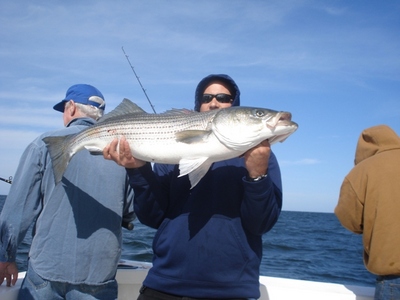 Had Njfishing own Eric the Mortgage Man, Will, Dan fresh in from California along with Jeb Looking for his first Striper... We had a 4 man crew today.