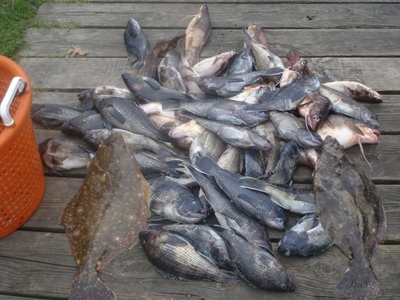 Gene had the hot hand with da fluke landing 2 keeper fluke on a seabass rig with clam... We also had 3 real nice winter flounder and a fat blackfish that went back to the sea... Seen a few more ling than we been seeing today witha couple of fatties.