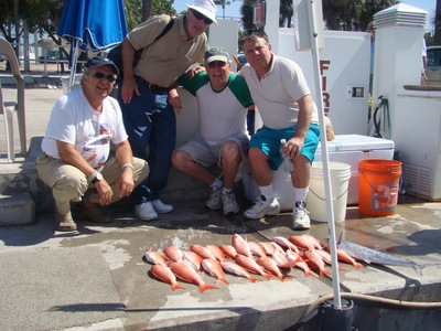 Back to the fishing; we went trolling down the reef because we knew we were going to have to get some good eating fish in the boat for this crowd. However the kingfish just were not biting very well. We ended up catching one. Than we did some deep drops on a few ship wrecks hopping to maybe catch a grouper or some snappers? Once again NO LUCK. Ok off shore we go hopping we can find some dolphin fish (RATS) no luck and by this point we were out of time. But I had one more bottom spot I wanted to try and YES we finally found them. Nice size snappers. Sorry about getting you guys in so late but no one seemed to mind.