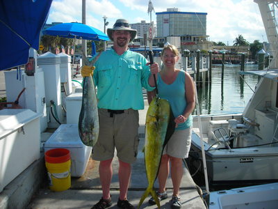 While we never did see any sharks or sails a couple of their guests did get to catch a couple of real nice dolphin fish for their fish fry tonight.