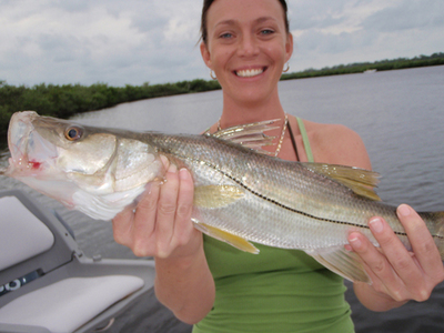 jennifer try to catch fish now on very lifght tackle, she caught this snook on 6 lbs, with a small jig ,and this is the first snook she caught, and enjoy the chalenge of small reel 3000 stella and 4 to 10 lbs action rod