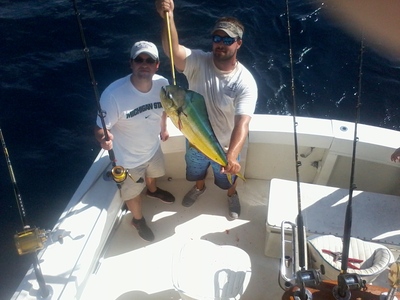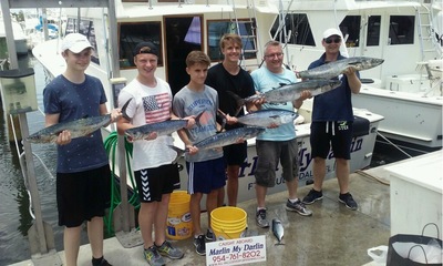 Those Mahi-Mahi are still here but have moved offshore. Some at 14 miles yesterday, and that is if you find them. That is an all day charter for us, and we have been fishing on the reefs and the bottom closer to shore. Tried them out there by request a few days back and it made for a long charter. Better bet for us to stay inside, especially with the west winds in the morning. Couple of Wahoo on this "King"(not my word) tide and moon we are experiencing. Some nice Kings with many running the size as pictured and those Bonitos too. Continued slow on Sails. Deep water Snappers are biting well. There are a few Mahi on the inside but very incidental.