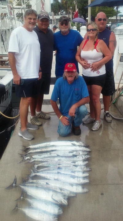 We continue to see Wahoo, Kingfish, Bonito and Blackfin Tunas in the vicinity of the reefs as you see in the photos of some anglers we have had aboard recently with their fish. But it has slowed slightly with a fluctuation of catches this week. Still some good numbers of decent fish hitting the ice often, but some stretches of erratic bites. Strong catch of Kings yesterday for our anglers ut of Destin, Fl but that followed a day when we only managed four Kings on a morning charter. Thankfully the Bonito continue to fill some of the gaps in action. A Mahi- Mahi here and there but certainly no big days for them.