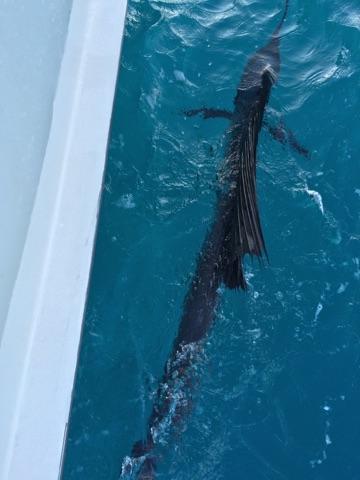 We we said we are having better catches on many days but those slower days are still with us. The tougher fishing days are directly related to slow current situations lately. The Sailfish we have caught have shown a tendency to once again be a bit deeper than normal, but we have had some success with them. Live baiting with the kites has been a good choice but we have seen then in the trolling spread too.