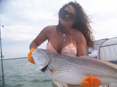 we caught some nice redfish next the school of poggires with this beautifull lady, and she was very good for to fight all the fish shehave on the rod