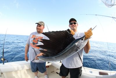 Our trip on Nov. 4th was a full day trip, and try as we might, we could get no sailfish bites. We were able to boat a few smoker (40lb) kingfish as well as some other kingfish around 10-15lbs. We also landed a few bonitos, and some small blackfin tunas that are perfect for sashimi!