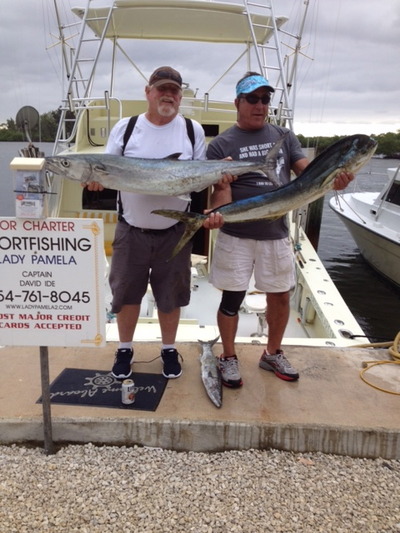 Tuesday we had a group of Italian race boat engine manufacturers that a buddy of mine brought out on the Lady Pamela II. We went offshore for the six hour charter, trying to catch mahi-mahi. The weather was a little on the rainy side but the group ended up catching ten nice mahi and one kingfish.