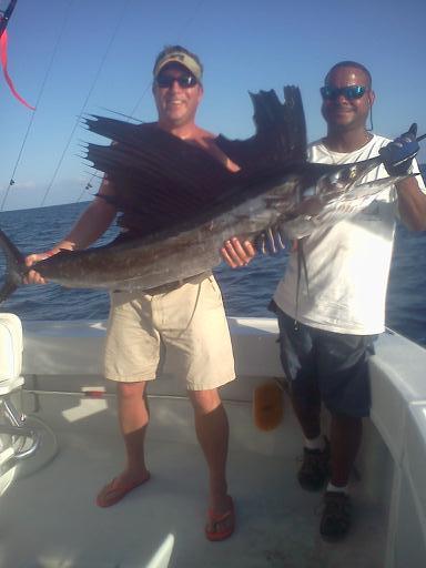 A fishing party was held by Tom Tower and Joe Jolls for their clients aboard the Happy Day Today along with the Topshotfishing team. Their clients came from all over the US, including, Kevin Clunic, from Scotland. Joe said he would love to catch a Sailfish – being from Fort Lauderdale FL, he has gone fishing with his brother off of Boca Raton with no luck.