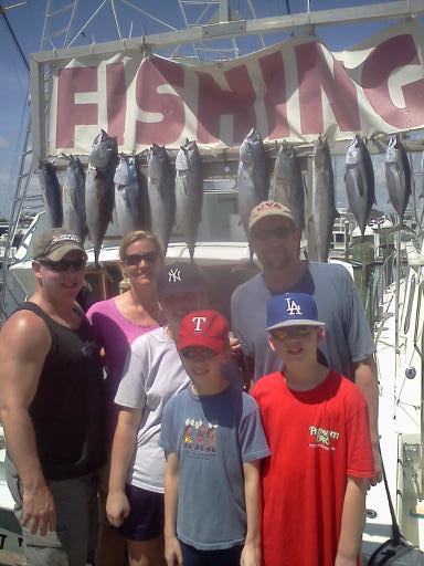 While all three children were excited waiting for their first fish, the plainer rod bent over. Cartiam was our first angler as he reeled in a 10 lb. Bonito. From there the action started – Jackson was the next angler on the plainer rod - we decided to leave the plainer rod in the covering board to make it easier for him to reel in. He was rewarded with a Black Fin Tuna. Next up was Jacob and we repeated the process of leaving the rod in the holder – he caught another Bonito. Everybody took their turns including mom and dad and wound up with eight Bonitos, three Tunas and one Kingfish which will be served for dinner that night. I was pleased to have the fourth generation of this family fishing with me, and look forward to seeing them again soon.