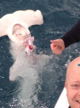 From there I went out to 350 ft. of water looking for a Shark. With Shark baits out, we waited patiently but no Shark. Dave our mate, started bringing in the Shark bait. While the last Shark bait was 30 ft. from the boat, the dorsal fin of a eat Hammerhead appeared chasing down the last bait. Dave free-spooled the bait to the Shark and immediately he ate it and the fun began. All the young anglers took turn fighting the Shark; Dave wired the fish and brought him to the side of the boat; the Shark measured 8 ft. long. Pictures where taking and Shark was released to fight again.