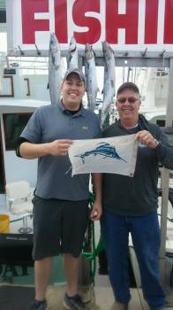 Tim Callman along with son Ian N.Y. decided to charter the Topshotfishing team to do some deep sea big game sport fishing. Winds were out of the east at 15- 20 mph, temperatures in the mid 70's. As the Callman boarded the boat, Ian inquired about doing some shark fishing so I planned on doing some shark fishing later on the trip.