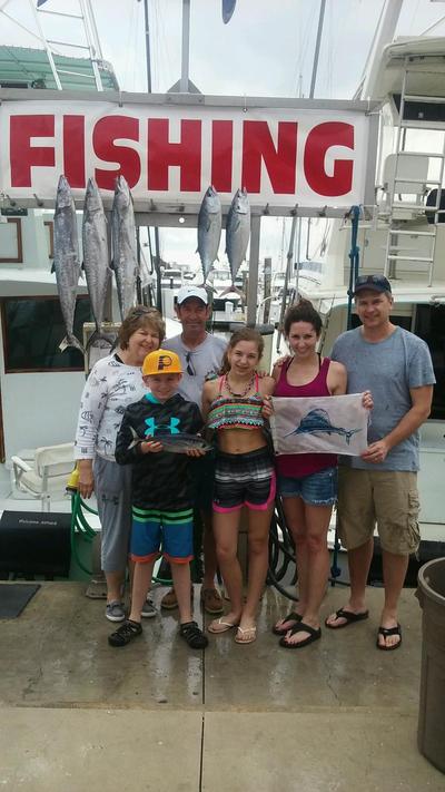 With Captain Richard Budalich at the helm, we stopped to purchase a dozen live Goggle Eyes from T&T Bait located in the inlet in Fort Lauderdale. Fifteen minutes later lines were in 120 ft. of water at the sea buoy in Fort Lauderdale, 1.8 miles from shore. As we trolled the reefs with two plainers down and four surface baits, the two young anglers brought in the first two fish – a Kingfish and a Bonito. From there, the Ricketts family rotated bringing in a total of three Kingfish, two Bonitos and two Black Fin Tunas.