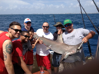 Captain David moved the boat along the reef edge and got our anglers a couple of nice bonitos which he took off shore to use for shark bait. It was a good move as a 5 foot hammerhead took the bait and got our angler back in the fighting chair. This time it was solid hookup and the fish was brought to the boat, photographed, then released. It turned out to be a nice all around.