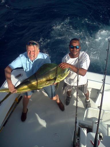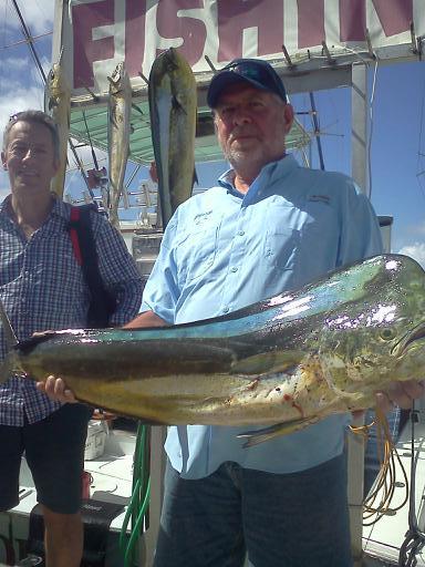 Once is never enough – Dirk Schonenberg, who fished with us two days ago, after catching a Sailfish and a couple of Sharks, decided to charter the Happy Day Today again to do some off shore fishing. Mr. Schonenberg brought his partner and business associate from the Royal Van Lent Flagship Corporation.