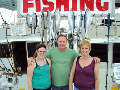 As we trolled the reefs in Fort Lauderdale, we zig-zagged in and out ranging from 80 ft. out to 210 ft. of water. Barbara was our first angler and she reeled in a Bonito – her first fish ever caught. Carol took pictures of the event. From there we kept trolling – all the Freemen's took turns bringing in their catches – a total of two Kingfish, four Bonitos and two Tunas.