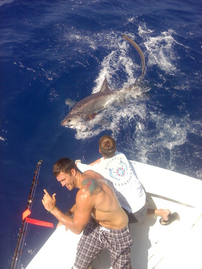 We are still catching Kingfish, Wahoos, Black Fin Tunas and Mahi Mahi off the coast of Fort Lauderdale. Our Shark season is approaching very soon bringing the migration of Thresher, Makos, Hammerheads, Bulls, Duskys and Tiger Sharks to our fishing grounds in Fort Lauderdale. Catching Sharks weighing anywhere from 100 to 400 lbs is an exciting feat for any angler to experience. Just to see these magnificent creatures in the water along the side of the Happy Day Today is a thrilling sight.