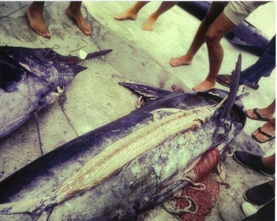 Looking back at some unusual pictures I have taken in my 35 years of traveling around the world fishing in every ocean, one picture stands out the most. While fishing off of Walkers Cay in the Bahamas in the BBC, the Bahamas Billfish Championship, back in the late 70's with angler Marsha Bierman and her husband, Lenny, I took a picture of a Blue Marlin that weighed in at 346 lbs. To the amazement of biologist, Monty Lopez, a 6 ft. White Marlin was found in the stomach of the Blue Marlin. Just to prove a fact that Blue Marlin just kill for a living even if they are not hungry this Blue Marlin had just eaten a 6 ft. White Marlin and still attacked a lure.