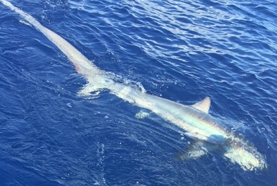 Sharks are providing good action for our anglers seeking a large fish. Strong (very strong) north current has had many hammerheads moving closer to shore and swimming to the south on the surface. Good fishing for Sandbar Sharks and other roundnose species as well. That beautiful Thresher was taken by Thomas C and his son Matthew along with two of Matthew's buddies Salvatore and Charlie.