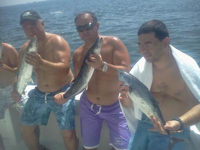 Pictured is a fun group we had with these recently typical sized Kings and the one fellow holding a Bonito as well. He insisted on the Bonito for the picture (did you know that Bonito means beautiful in Spanish?) I won't try to spell their names here but their choice of lubricant wasn't Tequila. Fun bunch of guys in town, from way out of town, for business. Hint….Vodka.