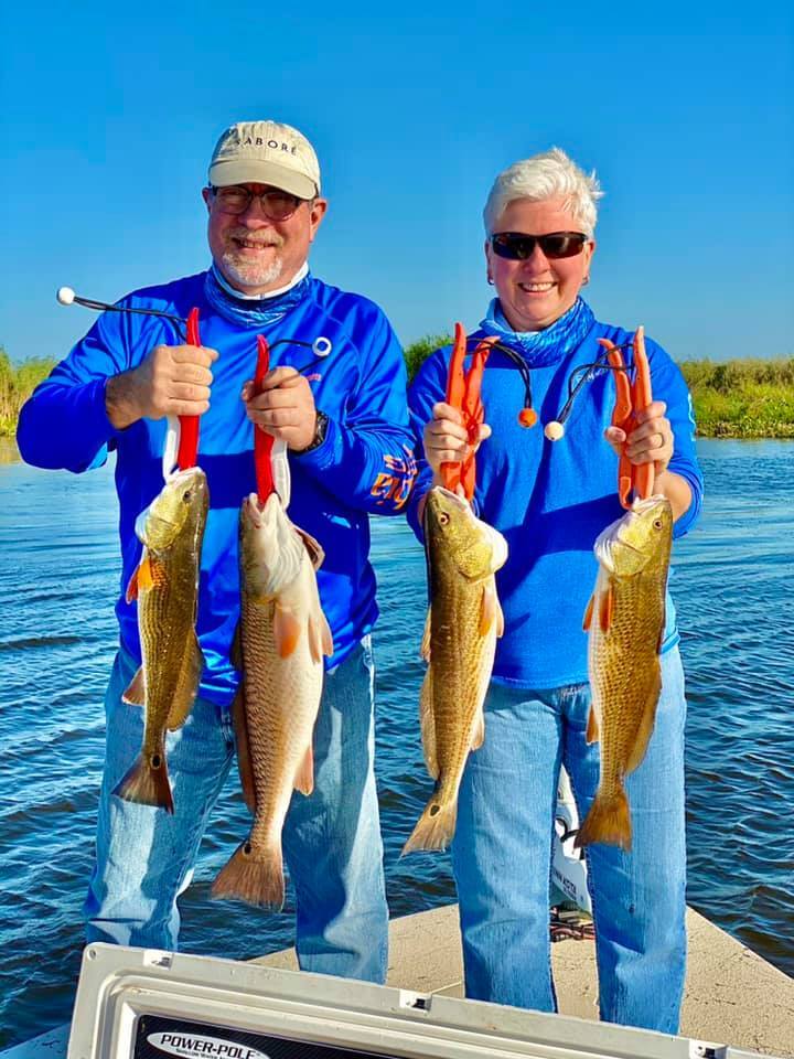Just a few weeks ago we had Pat and his wife Susan from Montgomery, AL aboard the Majek for the first of two days. We hit the first spot and put their limit in the boat quickly, despite heavy winds coming in from the North. The rest of the day we bumped around the marsh, checking out shrimp boats, gators, and a few more fishing spots before calling it a day. Great crew that was a pleasure to fish with!