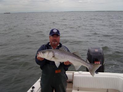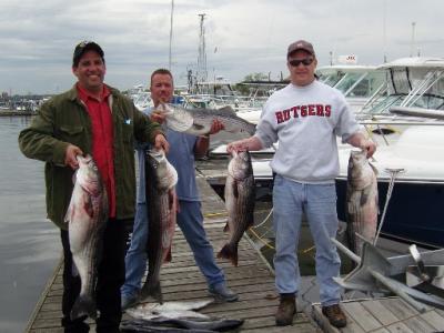 Headed out by 6:30am with Grady Dave O, Mike T and his pal. Already had bunker in the pen which was nice we were able to fish right away. Headed towards Old Orchard on the NJ side of the line and picked up 5 bass within 2 hours then it just shutdown.