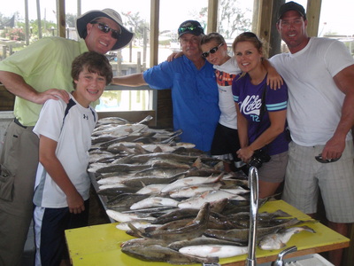 The day started out at my dock at Fort Pike with crew of good friends, we crossed Lake Borgne and went to 3 mile, found some tide running across points and the catching started. We was using live shrimp and DOA under a popping cork. The trout are hitting hard so you let them take the shrimp down before you set the hook.