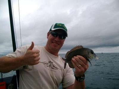 We then shot back to Reef no. 1 and fished on the bottom with light tackle and caught a lot of smaller fish and a huge variety of species like Copper Bream, Englishman, Slinger, Rockod (On Drop Shot), Stumpy, Black Tail, Trigger Fish etc. . I put a large Eastern Little Tuna out as shark bait on a balloon with no takes. We headed back at around 15h00.